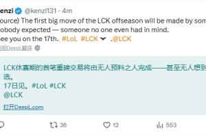 体育资讯11月15日讯 来自韩媒记者Kenzi社媒消息,该记者爆料称在LCK转会市场在17号(下周一)有一笔重磅交易,且是一位“意想不到”的选手转会。