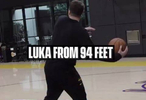 东契奇训练中单手命中28.6米超远三分