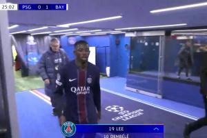 体育资讯11月05日讯 欧冠联赛阶段第4轮,巴黎对阵拜仁。25分钟,登贝莱伤退,李刚仁替补出场。