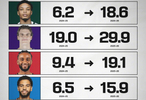 新赛季得分增长最多的6位球员,这不基本上就是最快进步球员名单嘛。