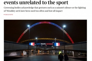 英足总、英超联赛和英格兰足球联赛成立了“世界事件工作组”(WEWG),以指导英格兰足球对重大世界事件的反应。除非事件与足球有直接关联,否则联赛将不会举行默哀仪式,也不会点亮温布利球场的拱门。