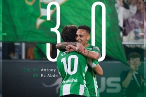 此役安东尼为贝蒂斯首发出战,2射1传帮助球队取胜,他当选本场比赛全场最佳球员。