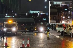 报道称,在比赛前,富勒姆的球队大巴在球场外发生事故,社交媒体上的视频显示,这辆车身前面清晰写着“富勒姆FC”的大巴车被困在路中央。另一张照片则显示,大巴车侧面似乎有一道很大的刮痕。
