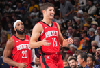 火箭10-2开场领先,随后被掘金一波18-7反超比分,谢泼德替补登场,外线接连命中3记三分,手感滚烫,仅仅只用1分44秒就连得9分,一人扛起火箭替补阵容的得分大旗。