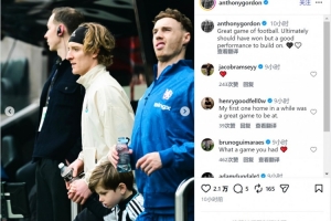 戈登赛后更新社媒动态,晒出多张此役的照片,配文:“精彩的足球比赛,虽然最终本应取胜,但这场的出色表现可以成为继续进步的基石。”