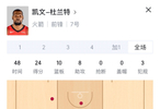 杜兰特今天打了47分30秒(包含一个加时赛),最近四场比赛,杜兰特的上场时间都超过了40分钟。