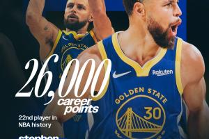 库里成为了历史第22位得分破两万六的球员,排在他身前的是加内特的26071。