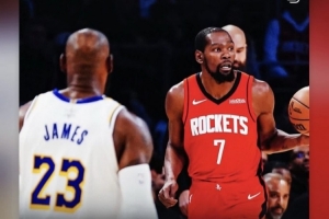 火箭前锋杜兰特在赛后采访中谈到与詹姆斯的交锋时说道:“我对于我们之间的每次交手都心怀感恩。”
