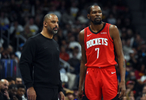 火箭的进攻思路非常明确,防守给什么就拿什么,主打杜兰特+海王挡拆二人转启动,利用杜兰特的牵制力,火箭其他人进行4打3