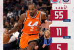 值得留意的是,伦纳德还是NBA历史首位单场得到至少55分10篮板5抢断3盖帽的球员。