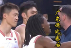 广东德比赛后起冲突:麦考尔场边对喷史密斯,队友迅速上前拉开!#广东宏远 #麦考尔 #深圳男篮 #CBA